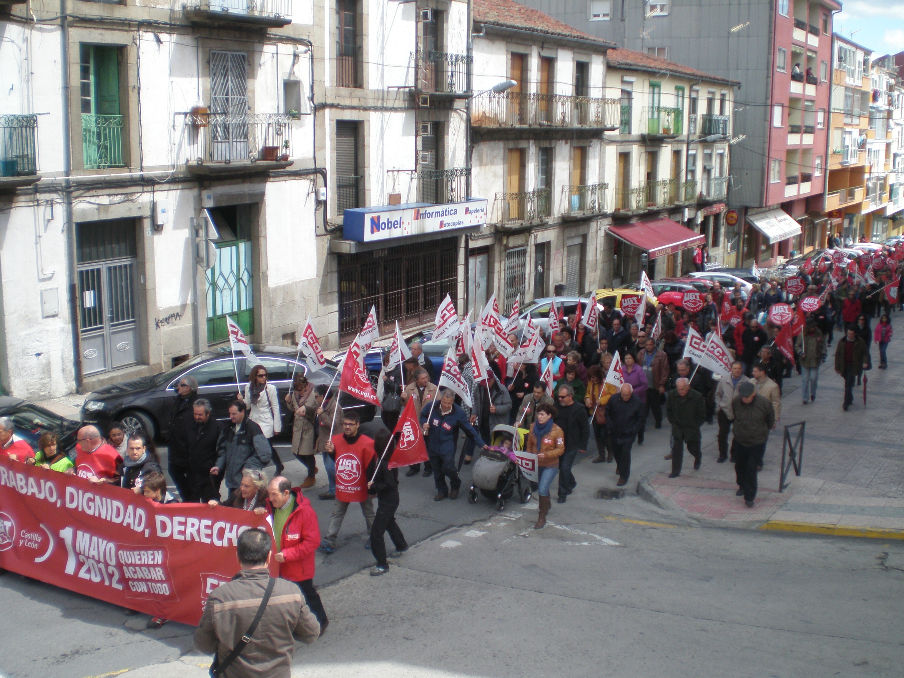 Los manifestantes realizaron el recorrido previsto sin incidentes, y con el civismo que caracterizan las movilizaciones en Béjar, para terminar en la Plaza de la Corredera, donde UGT y CCOO han leído ante 500 personas manifiesto en el que han puesto de relevancia que «reclamamos una negociación para alcanzar un gran acuerdo nacional para la reactivación de la economía y la generación de empleo suficiente y de calidad… desde CCO y UGT de Béjar exigimos a las administraciones locales, que se impliquen y formen parte activa de verdad con los trabajadores y trabajadoras de las empresas que atraviesan momentos muy difíciles… también nos atrevemos a exigir de forma pública la no desaparición de los Juzgados de Béjar, La Escuela Universitaria».