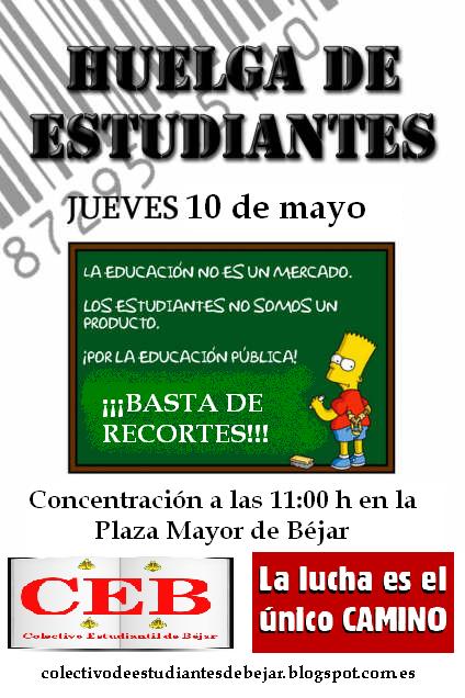 A esta movilización se le suma la propuesta por el recientemente inaugurado Colectivo Estudiantil de Béjar, quienes el día 10 de mayo se suman a la Huelga Estudiantil decretada a nivel nacional por diferentes sindicatos de estudiantiles.