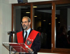 El rector, Daniel Hernández Ruipérez, durante los actos conmemorativos del 60 aniversario del Colegio Hernán Cortés en el año 2010.