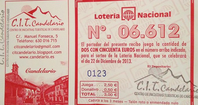 M.R. / La Lotería de Navidad sonrío escuetamente en Candelario con el número escogido por el Centro de Iniciativas Turísticas de Candelario. Así el 06.612 ha sido premiado por 100€ al décimo, o lo que es lo mismo, para quienes tengan una participación de 2,5 euros el premio es de 12,50€.