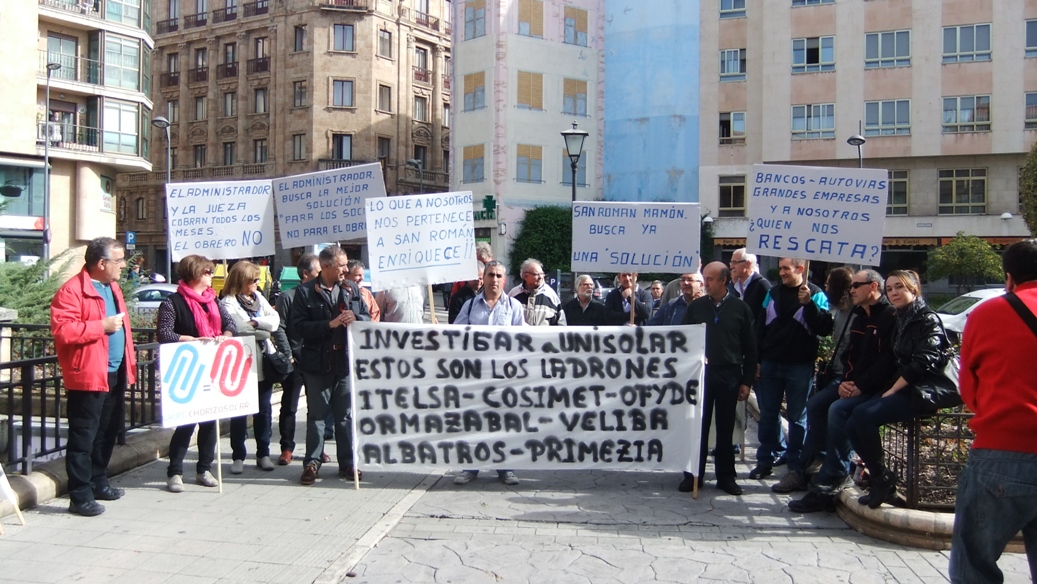 Los manifestantes, principalmente trabajadores despedidos de la empresa Unisolar, han estado durante cerca de dos horas mostrando públicamente su indignación, gesto que el administrador concursal no ha valorado, ya que no se ha dignado a atenderlos, asegurando en su oficina que en estos momentos no estaba, una circunstancia que según aseguran los despedidos «es la tónica general, nunca está».