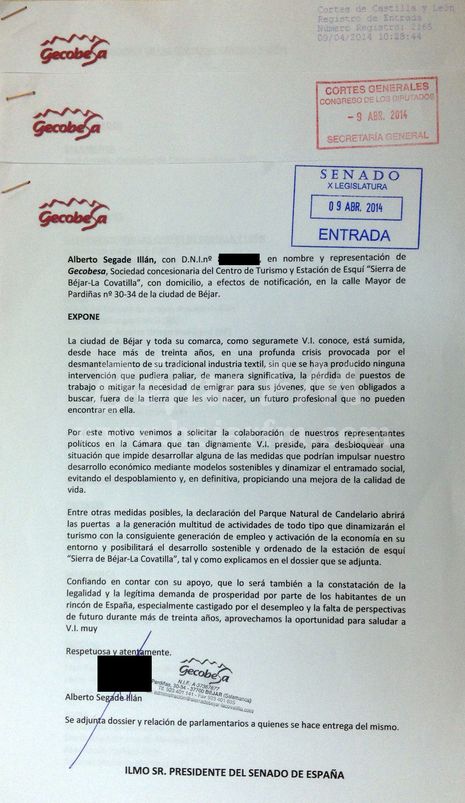 Desde el Senado, su Presidente, Pío García Escudero, nos confirma que la Mesa de la Cámara adoptó el acuerdo, en su reunión del 29 de abril, de trasladar a la Comisión de Medio Ambiente y Cambio Climático nuestra solicitud de impulsar el desarrollo económico de la ciudad de Béjar y su comarca, adoptando, entre otras medidas, la declaración del Parque Natural de Candelario. En el Congreso de los Diputados se ha dado traslado de nuestra solicitud a la Comisión de Peticiones de la Cámara para su oportuno estudio y tramitación. También desde el gabinete del Ministro de Justicia, se nos ha remitido acuse de recibo de nuestra solicitud, mostrando interés por la misma.