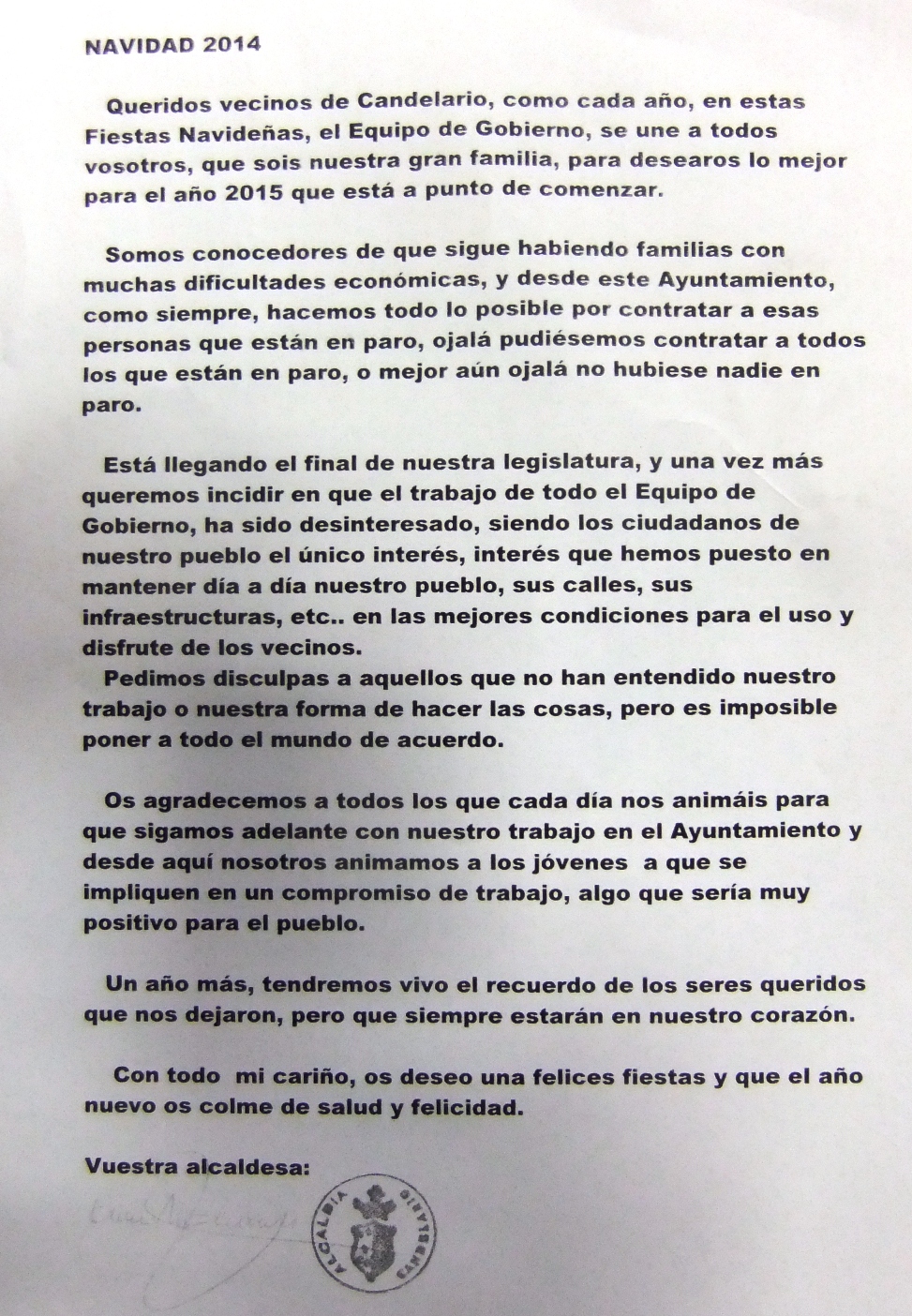 El Ayuntamiento felicita las fiestas a los vecinos Candelario Opina / 22 diciembre, 2014 M.R. / El Equipo de Gobierno del Ayuntamiento de Candelario buzonea su tradicional felicitación de fiestas a los vecinos y vecinas del municipio. Felicitación de fiestas del Ayto de Candelario Comparte esto: Compartir en X (Se abre en una ventana nueva) X Comparte en Facebook (Se abre en una ventana nueva) Facebook Me gusta Cargando...