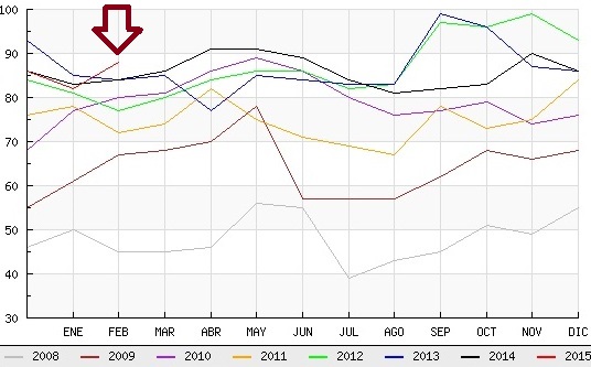Además febrero aumenta seis desempleados sobre los datos de enero, y cuatro parados desde el principio de año, cuando se contabilizaban 84 personas en paro.