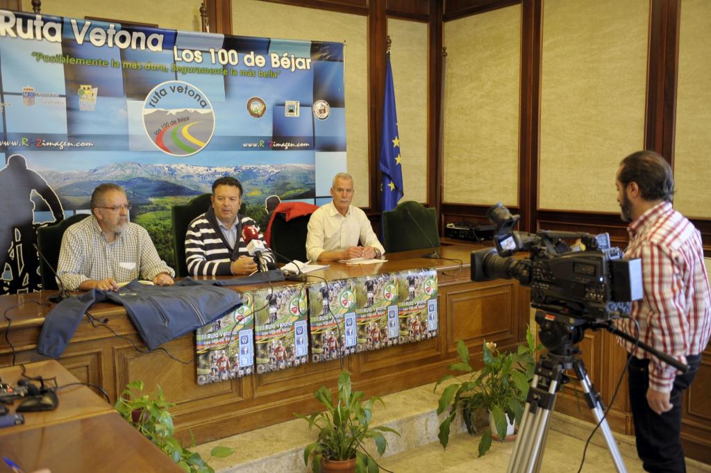 Gabinete de Prensa Ayto. de Béjar / Ayer por la mañana se presentó en el Ayto. De Béjar la 3ª edición de la Ruta Vetona y la 1ª del Maratón Vetón ante los medios de comunicación. Este acto, estuvo presidido por el concejal de deportes de Béjar, Raúl Hernández y por los presidentes de los tres grupos de montaña organizadores de la prueba: Luís Martín, Juan Carlos Bonnail y Víctor Campo.
