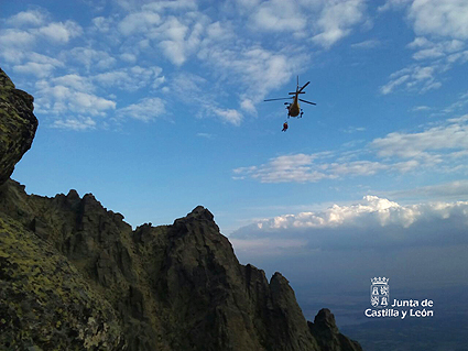 Comunicada la situación al Centro Coordinador de Emergencias de Protección Civil, se activa el helicóptero de salvamento, que sale hacia la zona con un equipo de rescate de Protección Civil a bordo. Tras realizar varias pasadas de búsqueda en los alrededores del pico Almanzor, se localiza finalmente al montañero extraviado en el paraje conocido como ‘Canales oscuras’, en el descenso del pico por su cara sur suroeste, en el término municipal de Candeleda (Ávila).