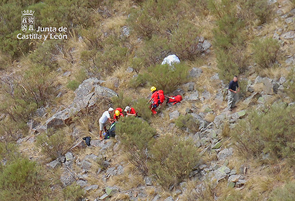 Una vez en el lugar, el helicóptero deja a los rescatadores en las inmediaciones del lugar en el que se encuentra el parapentista y se dirige a El Barco de Ávila a recoger a agentes de la Guardia Civil de Montaña para su intervención en calidad de policía judicial, dado que el piloto del parapente, un varón de 63 años, de Ávila, se encuentra fallecido. Se retiran, en consecuencia, los recursos sanitarios que se habían movilizado para atender al accidentado, incluido un helicóptero sanitario.