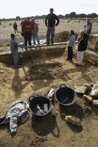 publico.es / La Asociación Salamanca por la Memoria y la Justicia ha exhumado este domingo de una fosa común los restos de cuatro hombres, todos ellos padres de familia, de entre 35 y 51 años, que fueron detenidos y asesinados en 1936 en una finca del municipio salmantino de Vecinos.