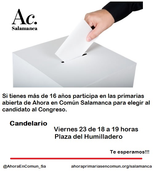 Ahora en Común, la nueva formación política ciudadana formada de cara a las elecciones generales, celebrará primarias del 22 al 25 de octubre para elegir su candidato al Congreso de los Diputados por Salamanca.