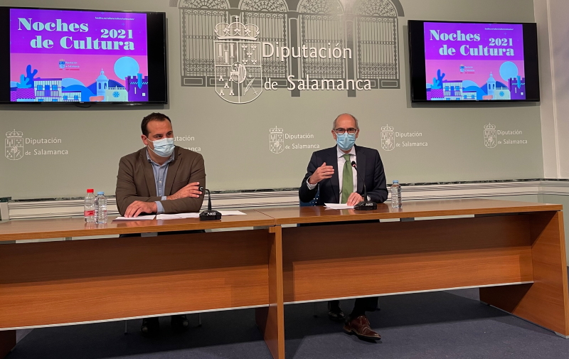 El presidente de la Diputación de Salamanca, Javier Iglesias, acompañado del diputado de Cultura, David Mingo, presentó hoy la décima edición del programa Noches de Cultura, una iniciativa con la que la institución provincial pretende acercar actividades culturales de calidad a los municipios de la provincia.