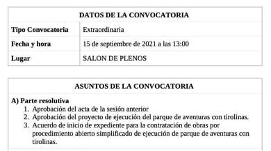 Convocado pleno extraordinario en Candelario el miércoles 15 de septiembre a las 13:00 horas en que el único punto del Orden del Día versará sobre la aprobación del proyecto de Parque de Aventuras de Candelario por un valor de 369.871 euros y plazo de duración de las obras de tres meses.