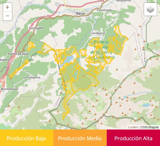 Les dejamos abajo el mapa ofrecido en la web oficial de MICOCYL donde se delimitan las zonas seteras de la «sierra de Béjar».
