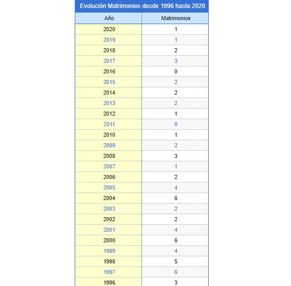 Desde marzo de 2020, y con la llegada de la pandemia, muchas bodas se anularon en el conjunto del país. Una tendencia que si bien afectó a todos los implicados no varió la escasa afluencia de bodas que se vive en Candelario en la última década, y que suma únicamente 14 bodas en los últimos 10 años, y con ciclos como el 2016 o el 2011 donde no se practicó ni un solo casamiento en el municipio.