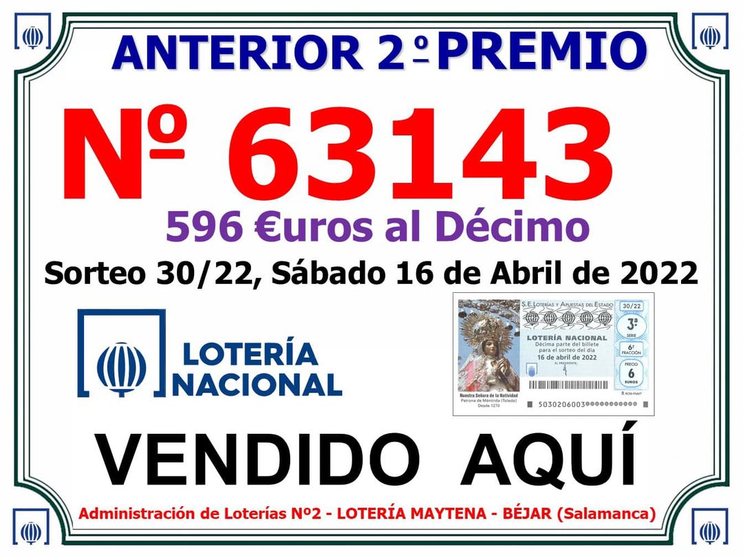 M.R. / La administración de Loterías y Apuestas del Estado, Maitena, de Béjar ha vendido 58 décimos premiados el pasado sábado 16 de abril de 2022, que hacen un total de 34.568 euros repartidos en Bejar y comarca.