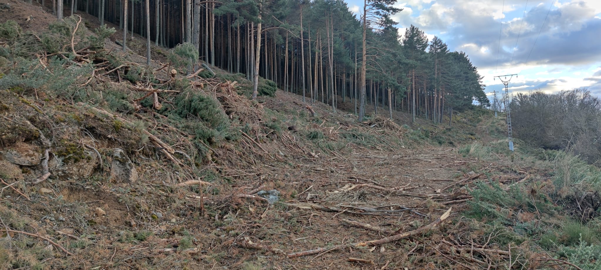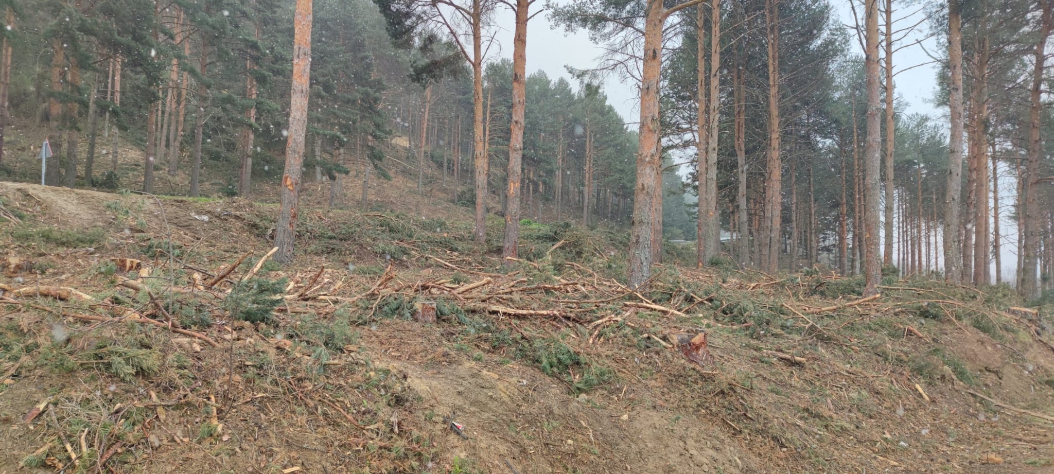 M.R. | La tala masiva de pinos en todo el monte público de Candelario continúa indiscriminadamente, y a las denuncias de particulares y oposición política se suma una acción reivindicativa plasmada en un antiguo cartel publicitario en la carretera de la sierra, justo antes de llegar a la fábrica de Redondo Iglesias, donde las talas son muy visibles y el daño ambiental está destruyendo el paraje de La Cruz del Herrerito tal y como lo conocíamos.