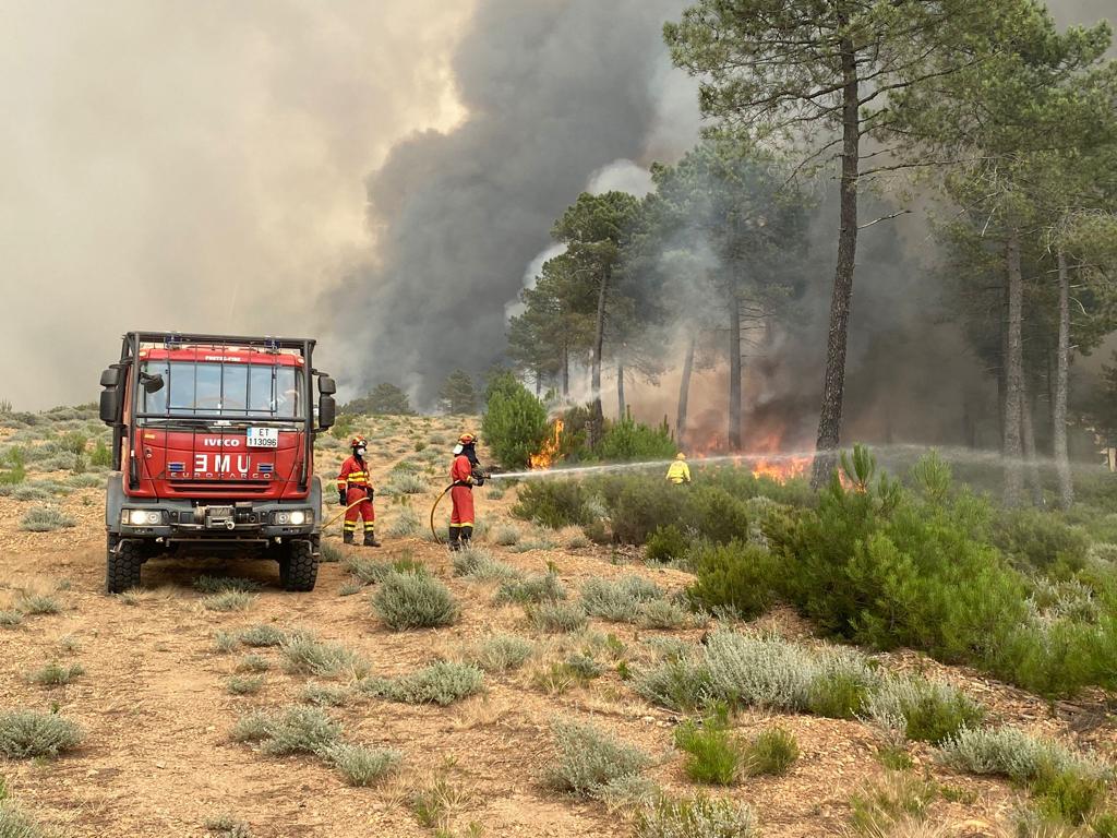 El incendio tiene desplegados un técnico, cinco agentes medioambientales, seis helicópteros, una cuadrilla, dos aviones anfibios, tres cuadrillas helitransportadoras, tres autobombas, tres cuadrillas de tierra, una cuadrilla nocturna, un bulldozer, una dotación de bomberos municipales y otra de la Diputación de Salamanca, además de un helicóptero de coordinación.