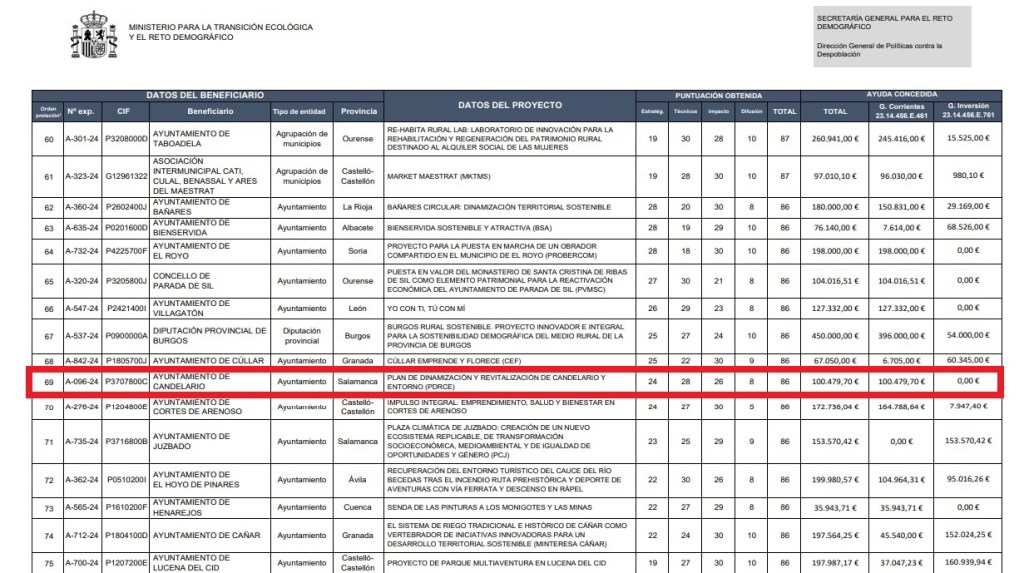 Candelario contará con más de 100.000 euros para el Plan de Dinamización y Revitalización de Candelario y entorno tras concederse una subvención convocada en junio de 2024 por la Secretaría General para el Reto Demográfico.